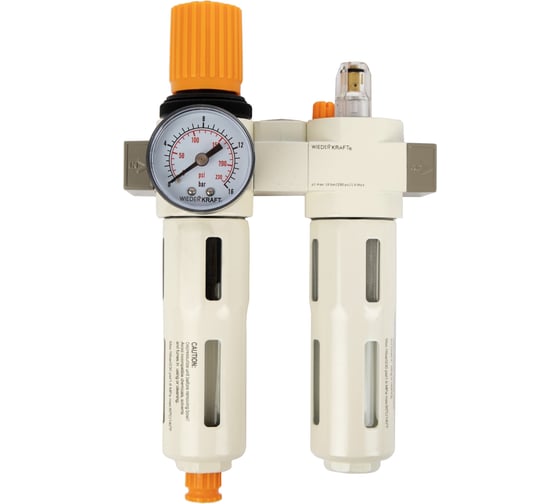 Блок подготовки воздуха WIEDERKRAFT 1/4, 16 бар с влагоотделителем 5 мк, лубрикатором и регулятором давления WDK-70120FD