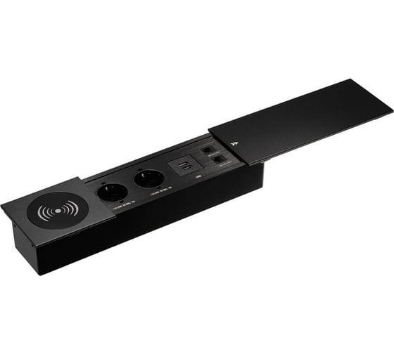 Расходные материалы для выдвижной встраиваемой розетки Mebax JX (Slide Top) 2 секции Черный 350х100х63мм RJ-45 + 2 USB беспр.зарядка (с каб.пит.) 00-00002893
