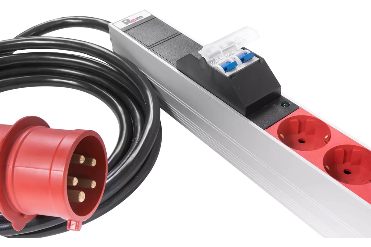 Блок силовых розеток Rem -MC, Shuko х 18, вход IEC 320 309 3PN, шнур 3 м, 1463x45x60 мм (ВхШхГ), 16А, для шкафов, алюминий, с контроллером R-MC8-3x16-18S-MI-1420-3-3PN