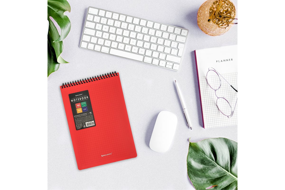 Блокнот BRAUBERG А5, 80 л., спираль пластиковая, обложка пластик, клетка, Metropolis, Красный, 115568
