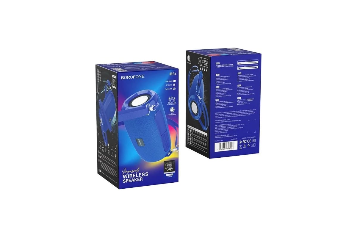 Портативная беспроводная блютуз-колнка Borofone BR4 - это стильная и компактная колонка, которая будет незаменима дома, на даче, в походе или путешествии. Для удобной транспортировки в комплекте поставляется длинный тканевый ремень. Удобно, что есть защита от пыли и брызг IPX5, поэтому девайс можно брать на отдых у водоема.