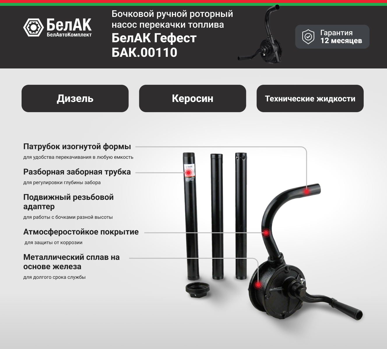 Бочковой ручной роторный насос перекачки топлива БелАК "Гефест" БАК.00110