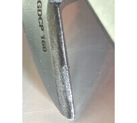 Очень мягкая р.к. На фото результат после первого применения. Самого первого. Перекусил скобу толщиной 0.6 мм. Это ужас. Ими только медную/алюминиевую проволоку кусать, да пластиковые стяжки. Да ещё и губки смыкаются криво. В общем то, что должно работать-не работает. Деньги на ветер.