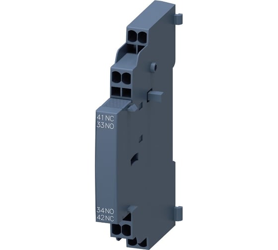 Боковой блок-контакт с 1 нормально открытым (НО) и 1 нормально замкнутым (НЗ) контактом, пружинные клеммы. Предназначен для автоматических выключателей 3RV2 типоразмеров S00/S0.