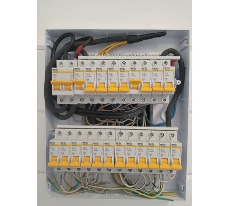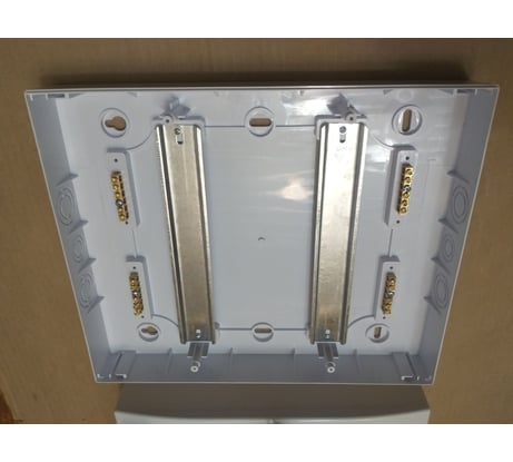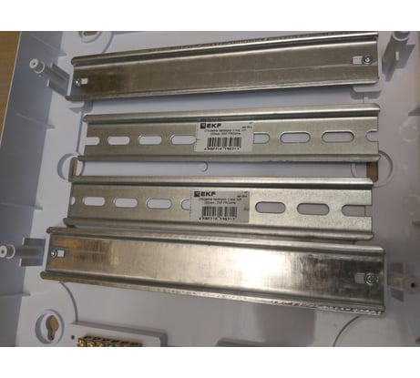 В комплекте 4 маленькие шины. Дин-рейки в комплекте металлические, тонковаты, прогибаются, но держать могут. Длина у них больше 200 мм, если вдруг надумаете заменить. Показал другие рейки на фото для сравнения. Пластик неплох, набил щиток почти под завязку, пришлось даже использовать кабель на 16 мм2, другого не было подходящего, да и СИП-кабелем стенки подпирал, выдержали. В задней стенке вырезал квадрат, померил толщину пластика: 3 мм. Защёлкивается хитровато: закрывается и открывается по нажатию, показал в видео как. В целом хороший щиток, мне понравился, надеюсь в следующий раз купить такой же.