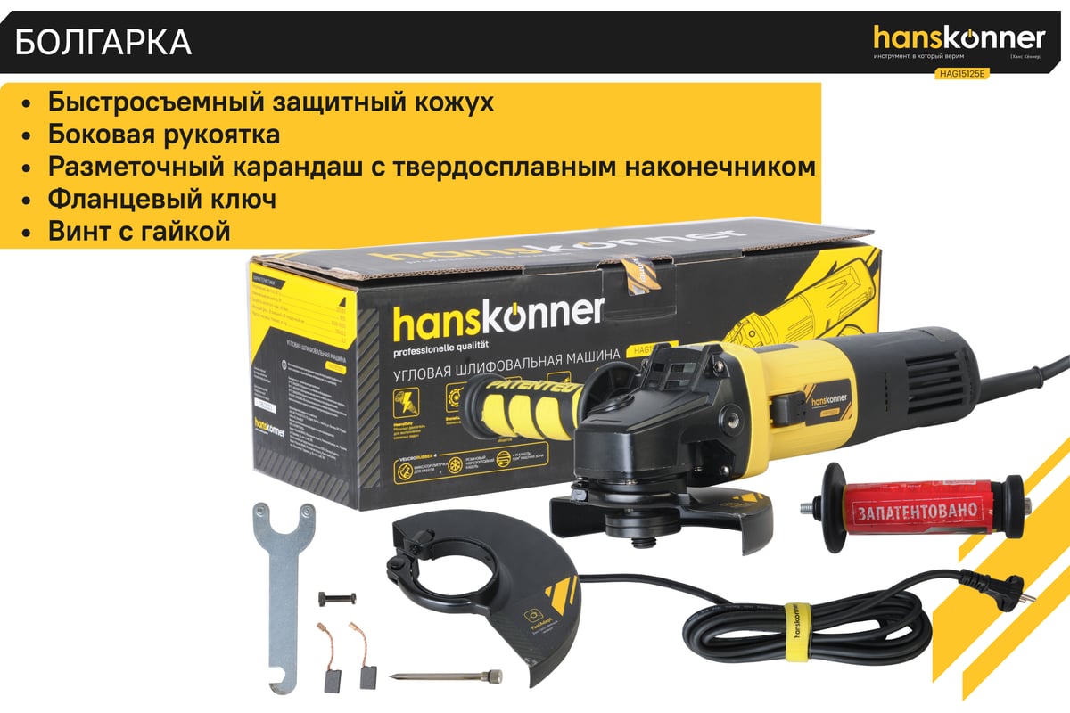 Угловая шлифовальная машина Hanskonner HAG15125E — мощный электроинструмент для шлифования и зачистки поверхностей, а также резки металлов, кирпича, керамики или камня без использования воды. Данную модель легко настроить под конкретную операцию и материал благодаря наличию электронной регулировки оборотов. Качественная пыле-защищенность и защита от перегрузок способствуют ее долговечности. Также имеется функция повышения мощности под нагрузкой, что содействует увеличению продуктивности.
