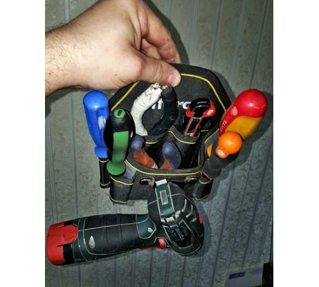- Инструменты плохо фиксируются - В большое отделение не залезть рукой для взятия, например, крепежа. - Кривой пошив. Неприятно смотреть и держать в руках.