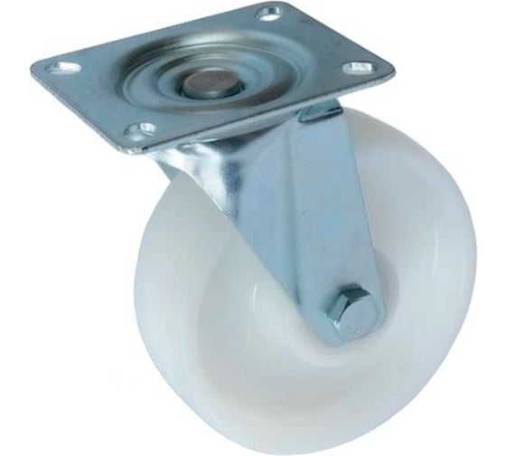 Корпус выполнен из высокопрочного нейлона, устойчивого к влаге, маслам и большинству химических веществ. Материал отличается низким коэффициентом трения, что обеспечивает легкое и бесшумное движение по различным поверхностям. Стальной поворотный кронштейн надежно удерживает колесо, а конструкция с роликовым подшипником снижает трение, увеличивая срок службы и улучшая маневренность.