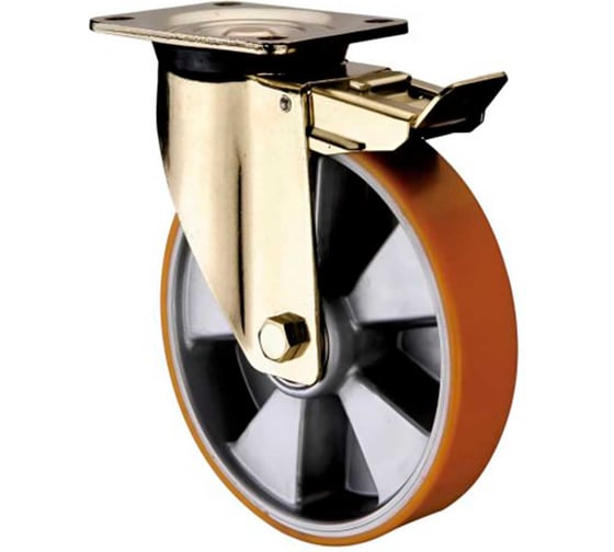 Колесо оснащено алюминиевым ободом, который сочетает прочность и лёгкость конструкции, а полиуретановая шинка обеспечивает бесшумный ход, отличное сцепление с поверхностью и защиту пола от повреждений.