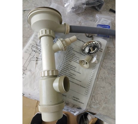Нет гофры для вывода в канализацию. Так же нет конечного уплотнительного кольца и гайки для фиксации гофры