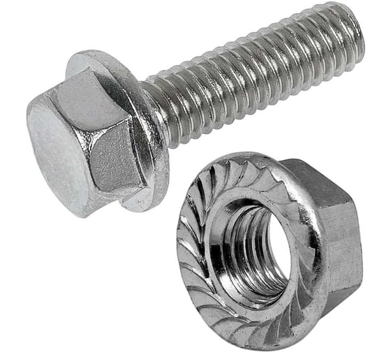 - Фланец с зубчиками – предотвращает самопроизвольное откручивание, увеличивая устойчивость соединения к вибрациям