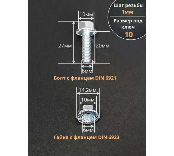 Болт 23 Болта М6x20 с фланцем к.п. 8.8 ОЦ DIN6921 с гайкой с фланцем 20 шт. П0000031127/А1А000060030007ф20