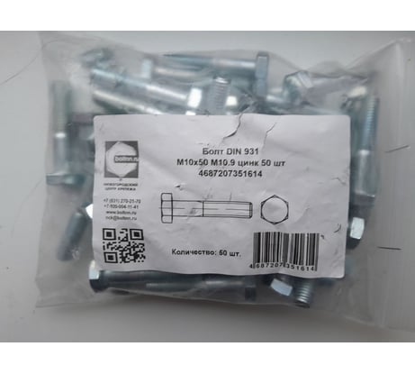 Болт boltnn.ru DIN 931 М10х50 М10.9 цинк 50 шт 4687207351614