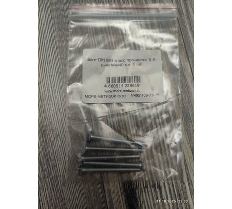 Болт Море-Метизов DIN 933 класс прочности 5.8 цинк М6x40 мм, 5 шт. BOLT933C58М6405M