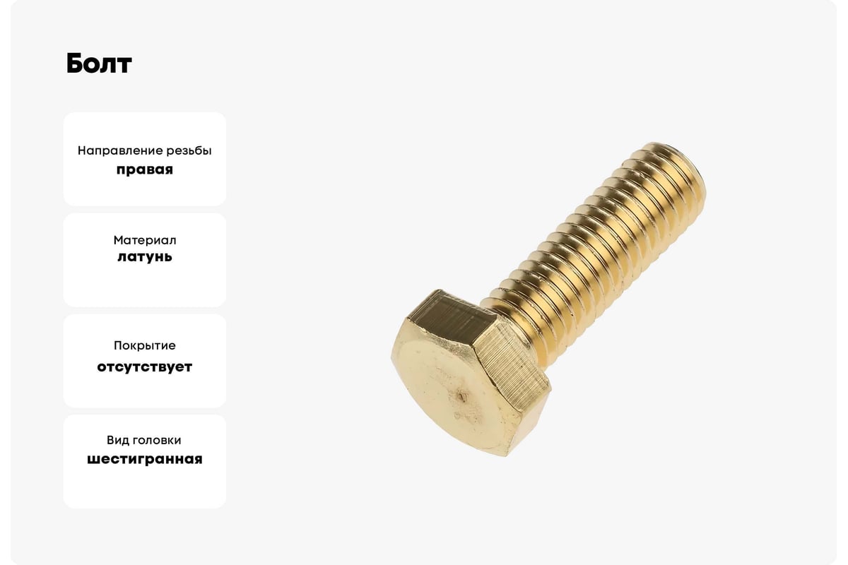Болт Море-Метизов DIN 933 латунь M8x55 мм, 2 шт. BOLT933L8552М