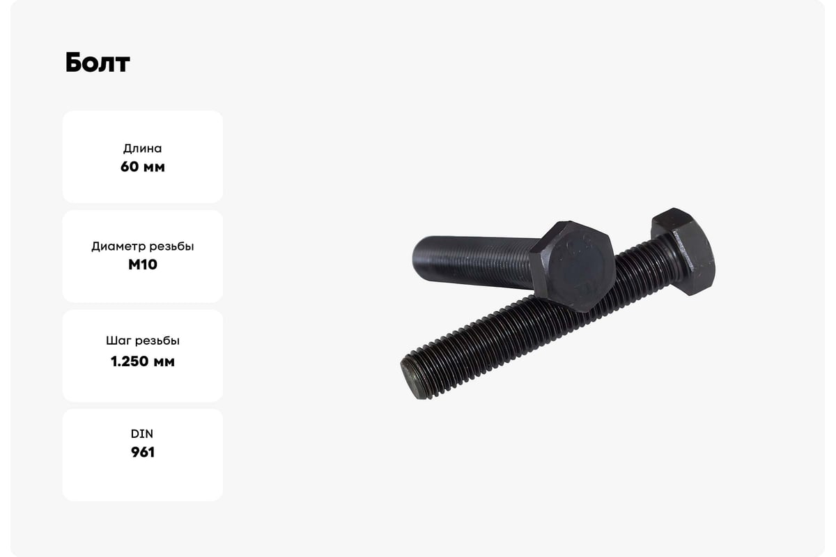 Болт Море-Метизов DIN 961, класс прочности 10.9, М10x1,25x60 оксид, 5 шт. BOLT961OМ10125605М