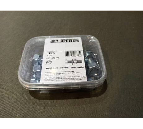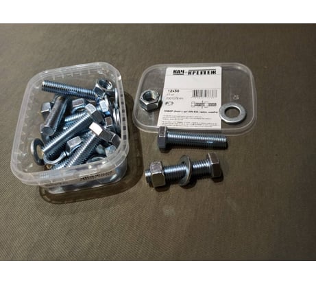 Вопросы и ответы о наборе болтов качественный крепеж 12/80 DIN933 (7 шт.) с ш/г полная резьба шайбы, гайки 0301085
