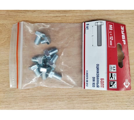 Вопросы и ответы о болте ЗУБР с шестигранной головкой, DIN 933, класс прочности 8.8, оцинкованный, M8x100 мм, ТФ6 2 шт. 4-303076-08-100