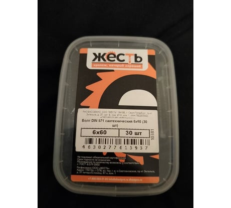 Болт сантехнический ЖЕСТЬ DIN 571, 6x60 мм, 30 шт., контейнер 280 мл УТ-00010381