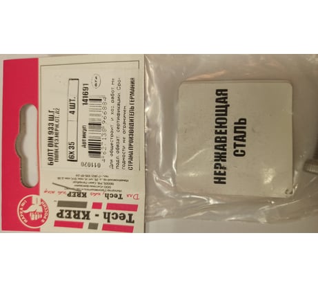 Отзывы о болте Tech-Krep DIN933 6х25 ш.г. полн. рез. нерж.ст. А2, 6 шт. 141689