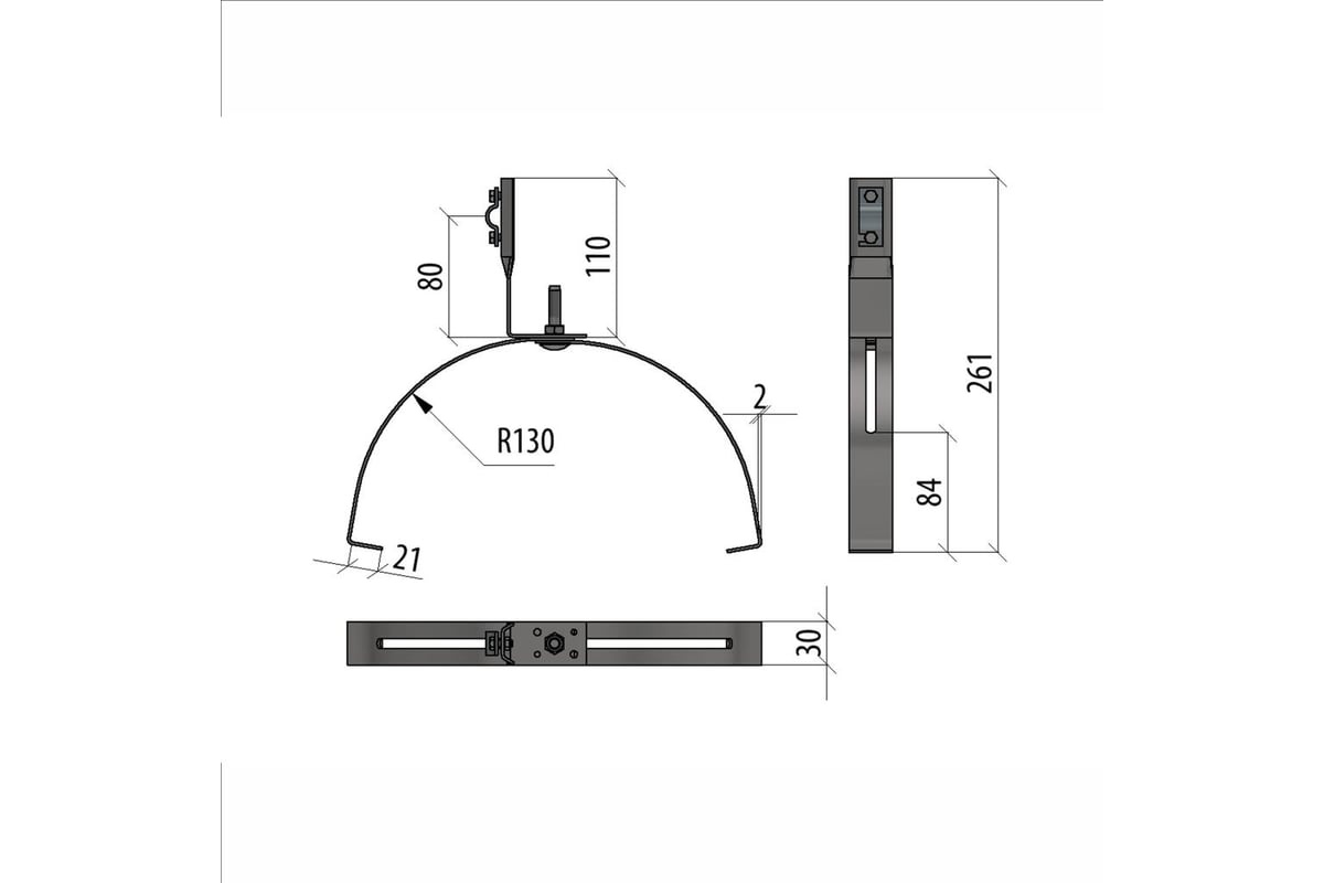 Компонент системы AURAFORT® используется для фиксации и соединения опорных конструкций проводников и элементов заземления на объектах различного типа назначения. Применяется для крепления прутка на коньке скатной кровли, диапазон регулируется путем затяжки болта М6х30. Для проводника D= 6-10 мм. Расстояние от основания до проводника 80 мм. Изделие выполнено из стали и оцинковано термодиффузионным методом. Фиксация проводника осуществляется при помощи двух болтов М5х12.