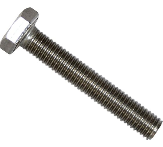 Болт выполнен из аустенитной нержавеющей стали А2 и обладает высокими антикоррозионными свойствами, что значительно продлевает срок службы. Конструкция метиза предусматривает полную резьбу и шестигранную форму головки, которая позволяет передавать большой крутящий момент не срывая граней. Продукт имеет высокий класс прочности.