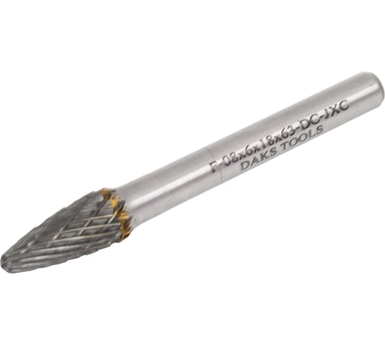 Твердосплавная борфреза F-8x6x22x67-DC DAKSTOOLS применяется на электрических и пневматических прямых шлифовальных машинках с цангой 6 мм.
