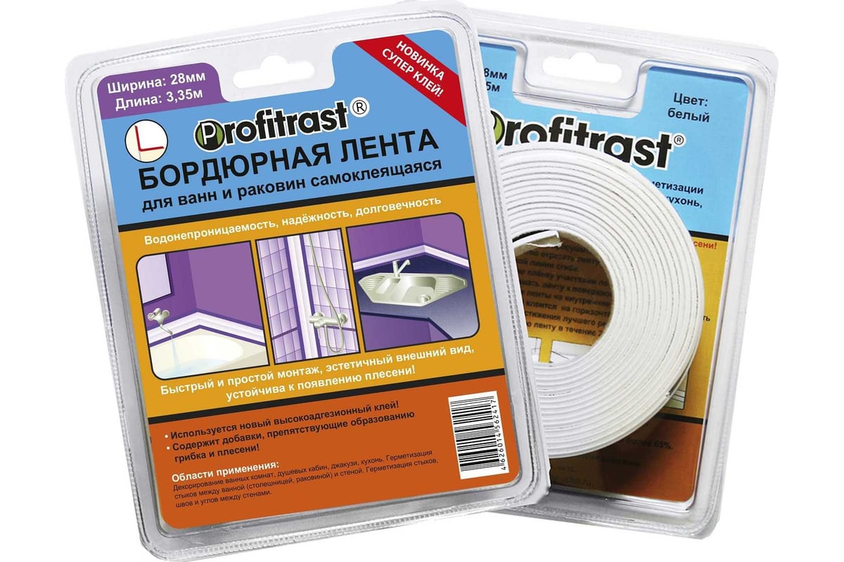 Бордюрная лента для ванн Profitrast 28 мм, 3.35 м, белый 0817070