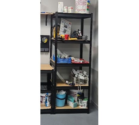 Стеллаж является оптимальным решением для организации рабочего пространства, где требуется надежное хранение инструментов, материалов и комплектующих в производственных условиях.
