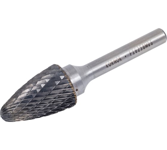Борфреза гиперболическая со сферическим торцом (тип F; 16х25 мм; хвостовик 6 мм) KORNOR 362162506