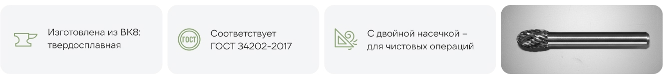 Борфреза овальная (8х13х6х58 мм; ВК8; E08; 13Х06) ИНСТУЛС 00001337666