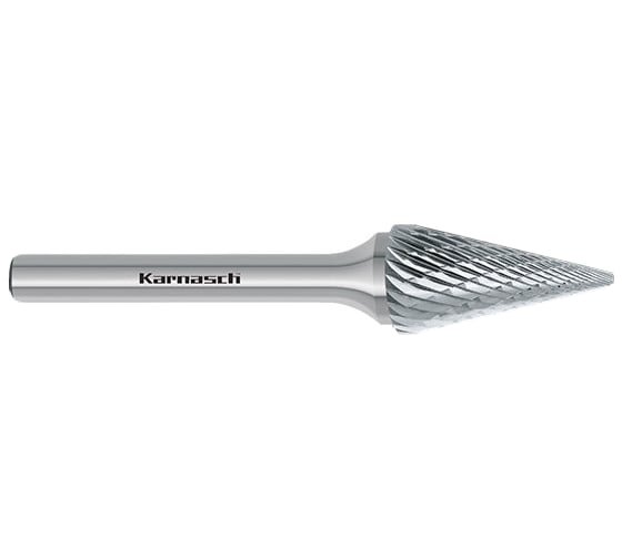 Борфреза твердосплавная Karnasch 11.3091-032 предназначена для удаления крапа, излишек материала с заготовок, обработки сварных швов, отверстий, резки стали твердостью до 60 HRC. Оснастка может применяться для обработки сложных форм и труднодоступных мест. Используется в прямошлифовальных машинах.