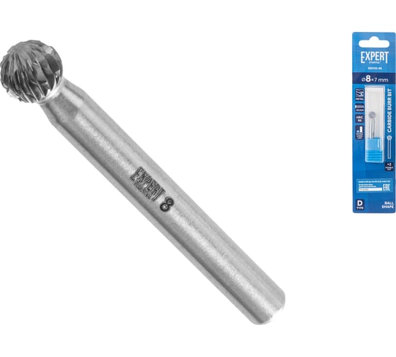 Борфреза твердосплавная сферическая 8x7 мм STARTUL Expert тип D (SE8703-08) - сменный металлорежущий элемент для работы с прямыми шлифовальными машинами (ПШМ).