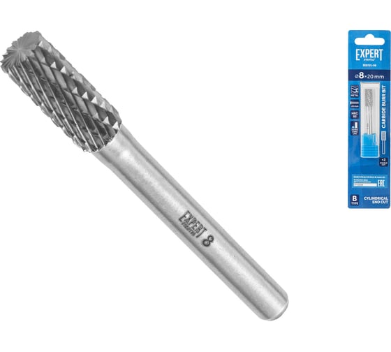 Борфреза твердосплавная цилиндрическая с торцом 8x20 мм STARTUL Expert тип B (SE8701-08) сменный металлорежущий элемент для работы с прямыми шлифовальными машинами (ПШМ).