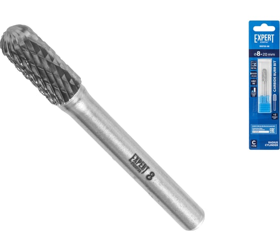 Борфреза твердосплавная цилиндрическая с закруглением 8x20 мм STARTUL Expert тип C (SE8702-08) - сменный металлорежущий элемент для работы с прямыми шлифовальными машинами (ПШМ).