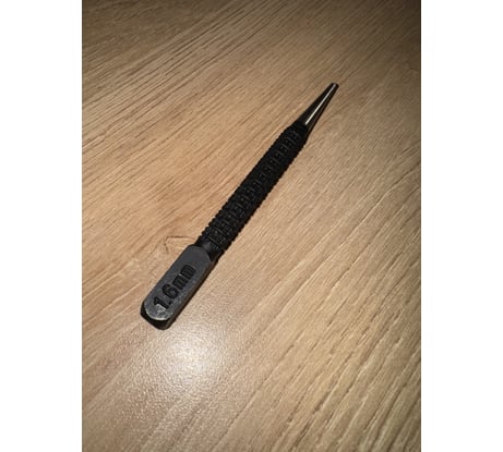 Отличная вещь. Длина 100, а не как в описании - 142 мм, видимо, в описании размер упаковки. Прекрасное для пальцев рифление. Ну с нескольких раз не убил - уже хорошо :) Что такое 1,6 мм не понял, поскольку диаметр наконечника больше - мм 2, наверное, а центральная ямка меньше - 1,4 мм. Видимо, указан минимальный размер шляпки гвоздя.