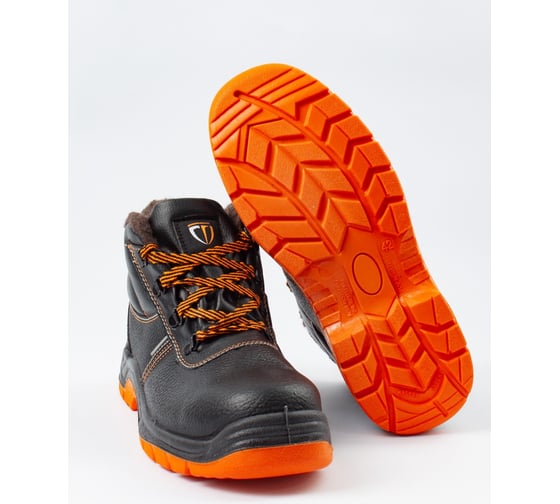 Верх обуви из натуральной водостойкой тисненой кожи КРС толщиной не менее 2 мм. Подошва маслобензостойкая и кислотостойкая (К20), сохраняет свои свойства при пониженных (до минус 30°С) и повышенных (до 120 °С) температурах. Защитный подносок выдерживает нагрузку в 200Дж. Вкладная стелька с амортизирующим эффектом. Широкая колодка, глухой клапан для защиты от пыли и грязи, широкий мягкий задний манжет (кант) из иск. кожи, мягкая прокладка под подноском.