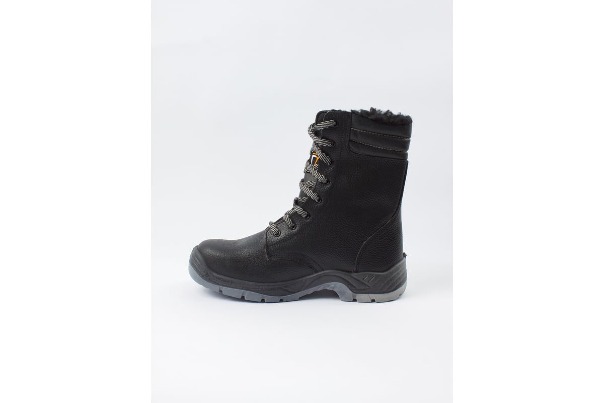 Верх обуви из натуральной водостойкой тисненой кожи КРС толщиной не менее 2 мм. Подошва маслобензостойкая и кислотостойкая (К20), сохраняет свои свойства при пониженных (до минус 30°С) и повышенных (до 120 °С) температурах. Защитный подносок выдерживает нагрузку в 200Дж. Вкладная стелька с амортизирующим эффектом. Высокий берец, широкая колодка, глухой клапан для защиты от пыли и грязи, широкий мягкий задний манжет (кант) из иск. кожи, мягкая прокладка под подноском.