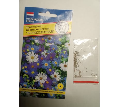 Однолетник. Высота растения - 20 см. В смеси собраны цветы разнообразных оттенков синего, розового и белого. Диаметр цветка - до 2 см. Брахикома может цвести как в солнечную погоду, так и в пасмурную. Брахикому используют для украшения цветников, клумб и бордюров.