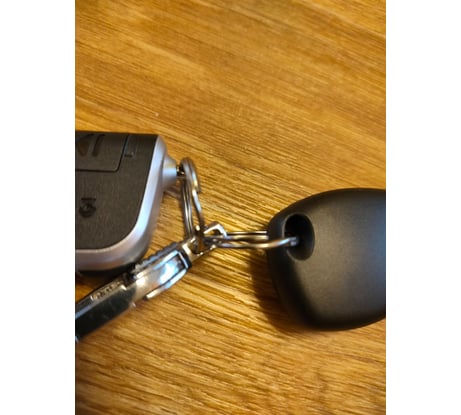 Очень хороший металлический брелок!Не помню,было ли маленькое колечко,как на фото,использую большое,для ключей.А другой стороной,можно цеплять к кольцам брюк,чтоб не потерять,как и какую то безделушку подвесить!!!