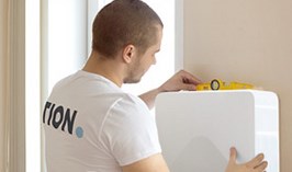 Выбор места на стене Бризер можно установить под подоконником, рядом с батареей или сбоку от окна. Наличие пульта управления позволяет вешать прибор под потолок. |