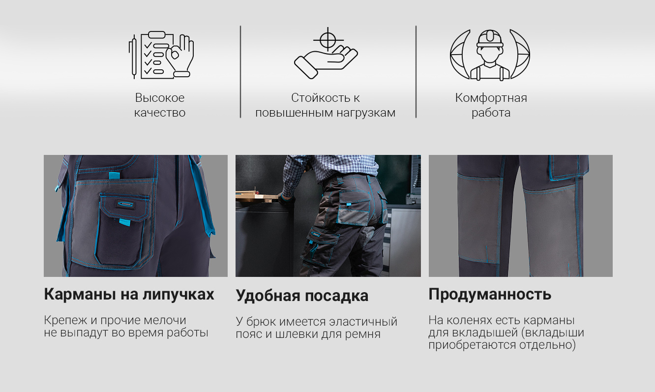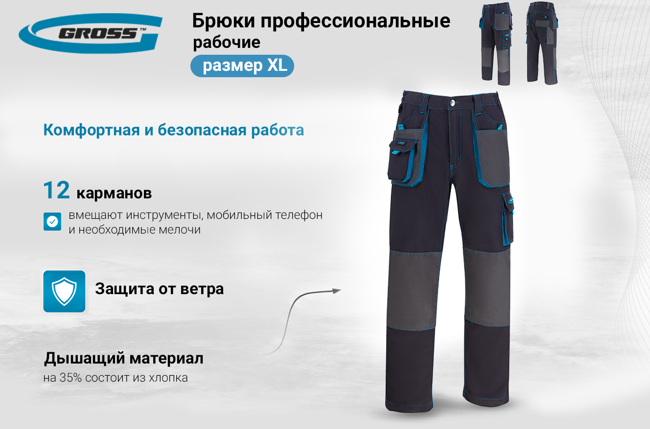 Брюки GROSS размер XL 90349 предназначены для использования в теплое время года, либо в обогреваемом помещении. Отлично подходят для профессионалов.