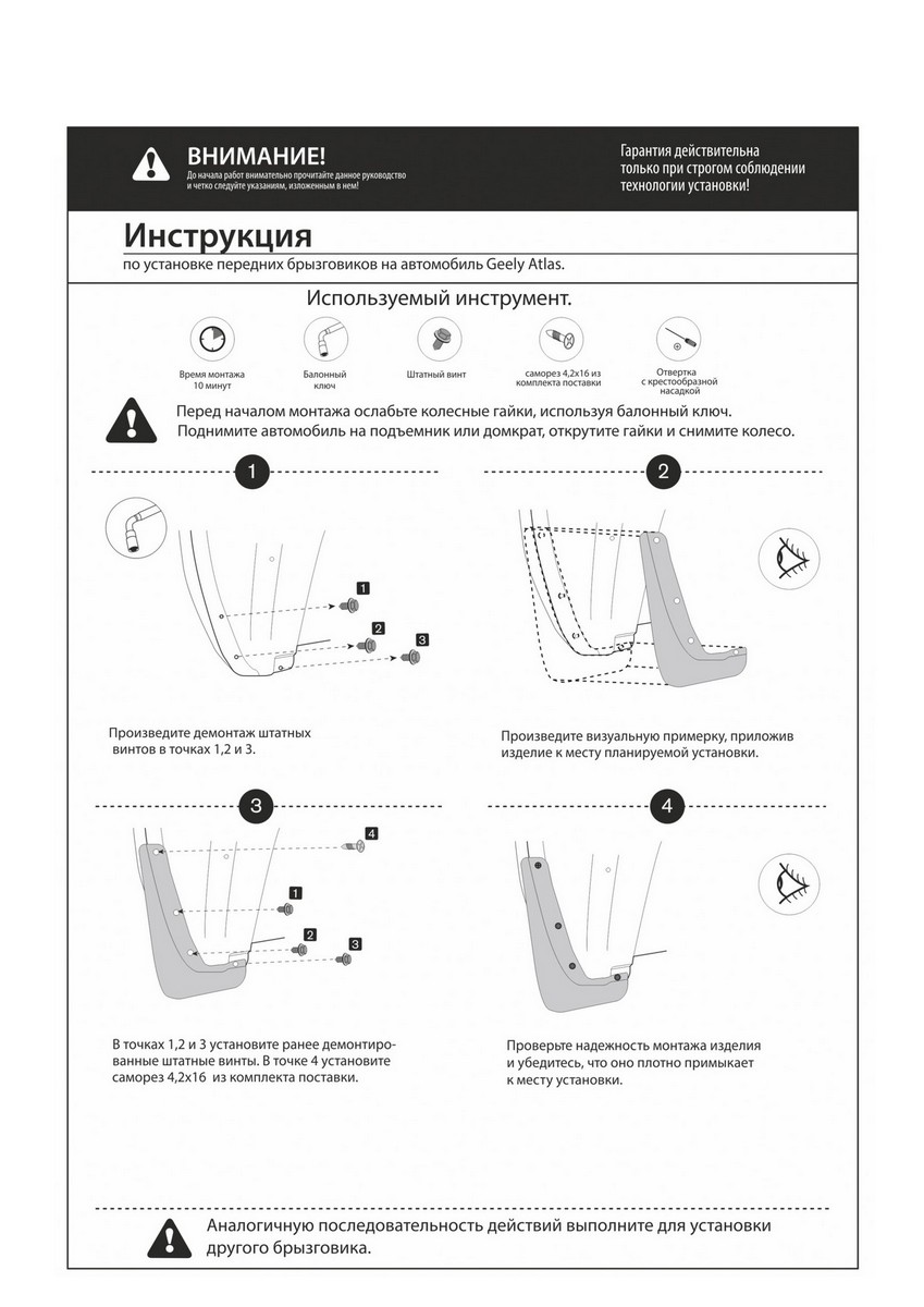 Брызговики передние Rival для Geely Atlas 2018-н.в., термоэластопласт, 2 шт., с крепежом, 21903001