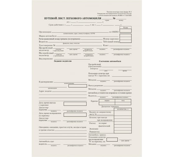 Отзывы о Attache Путевой лист легкового авто 1081334