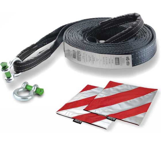 Буксировочный динамический трос HITCH prof лента, масса авто 3,3 т, разрывная 10 т, 6 м, 2 скобы SZ071511