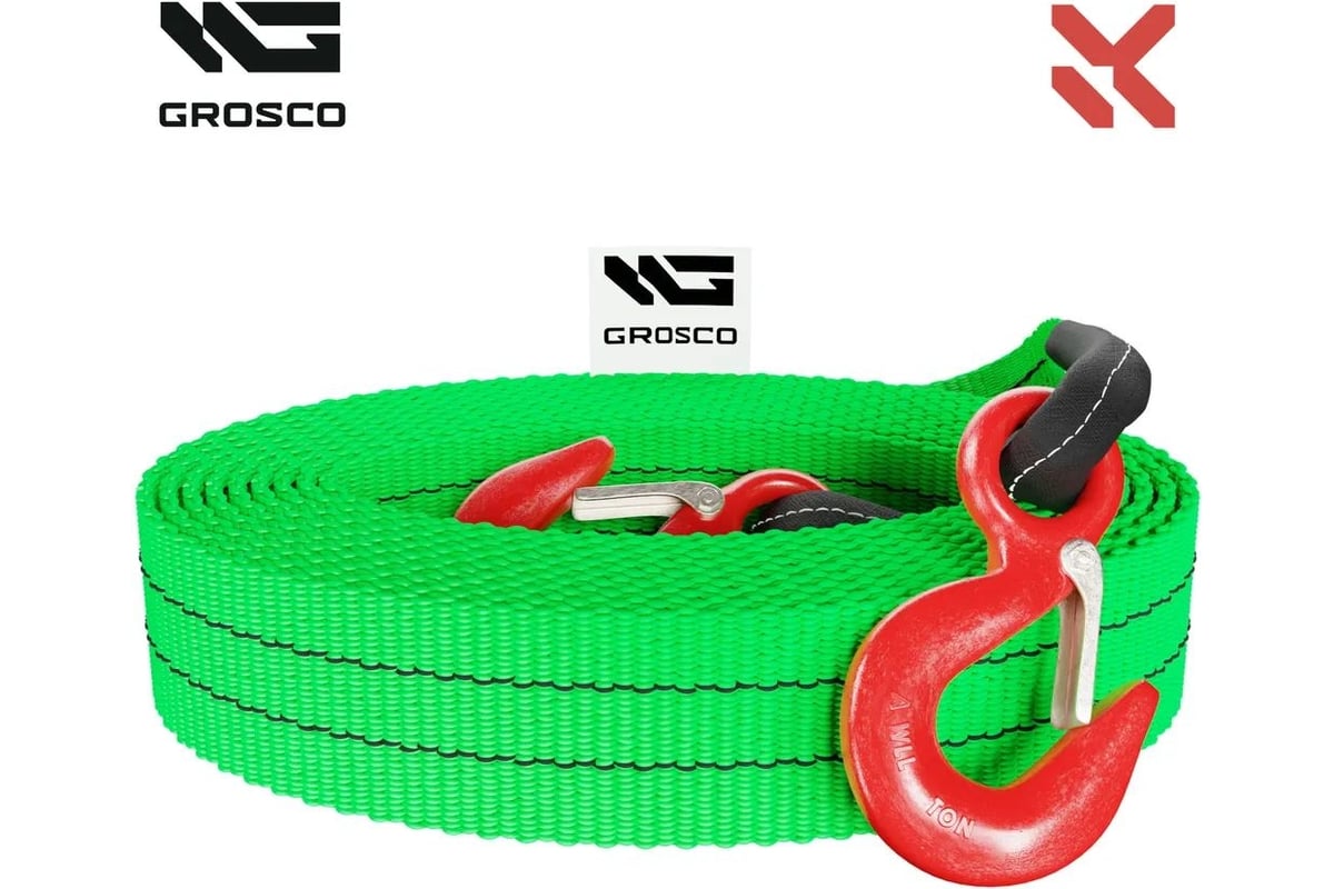 Текстильный буксировочный трос GROSCO. Наиболее популярный вид тросов для буксировки, позволяет вытягивать автомобили, грузовики, лодки, прицепы и другие транспортные средства. Добавьте этот прочный автомобильный ремень в свой аварийный дорожный комплект, чтобы буксировать любые автомобили из трудных ситуаций.