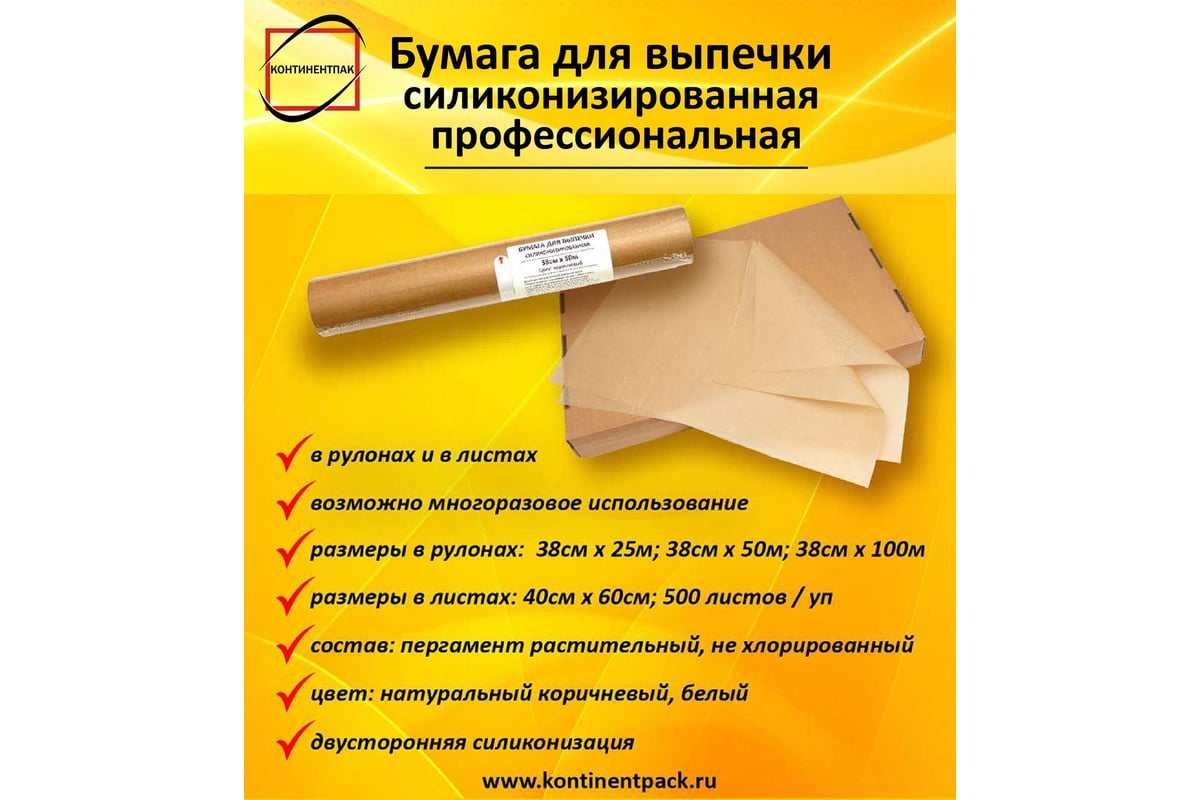 Бумага для выпечки КонтинентПак силиконизированная 38 см х 25 м коричневая 138791