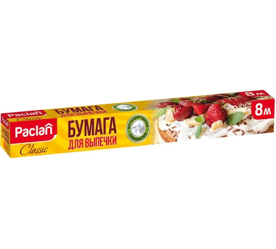 - Бумагу для выпечки Paclan производят из 100% целлюлозы со специальными добавками, придающими бумаге повышенную прочность