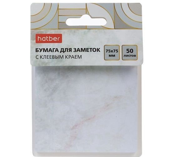 Бумага для заметок Hatber Marble 75х75мм, 50л, с клеевым краем, с печатью 090336