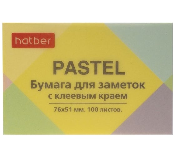 Бумага для заметок Hatber PASTEL 76х51мм 100л, с клеевым краем, желтая 090330